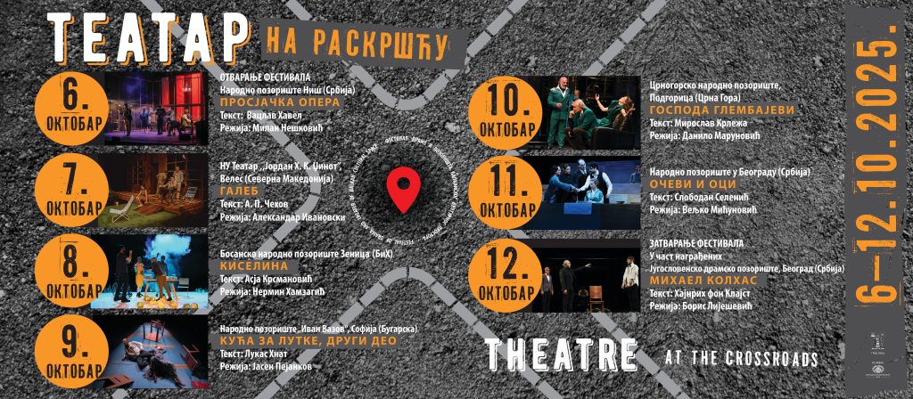 U Narodnom pozorištu Niš večeras će biti otvoren šesti Festival drame i pozorišta balkanskog kulturnog prostora „Teatar na raskršću”. Svečano otvaranje biće održano večeras gornjem foajeu Narodnog pozorišta sa početkom u 19.15 časova. Festival „Teatar na raskršću” održaće se od 6. do 12. oktobra i ima takmičarski karakter.